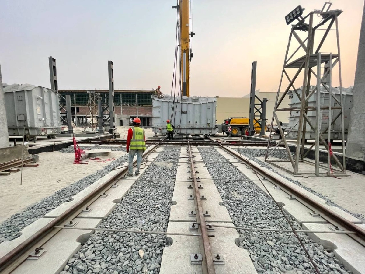 На прошлой неделе начался монтаж семи автотрансформаторов СВЭЛ мощностью 174 МВА на напряжение 400 кВ. Работы ведутся специалистами корпорации «ЭСКМ» под руководством шеф-инженера СВЭЛ.