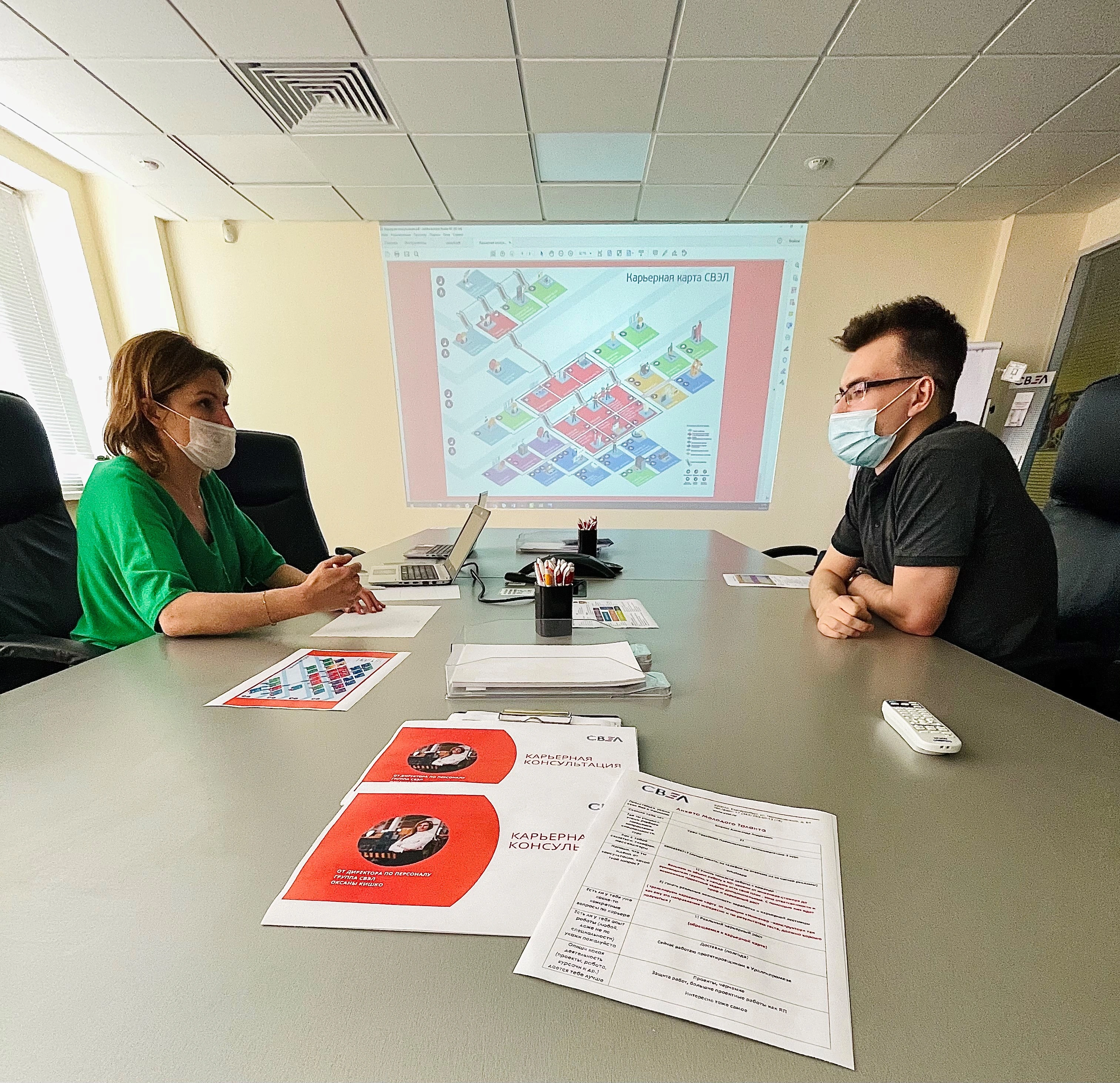 В рамках консультации у студентов-выпускников есть возможность обсудить все волнующие вопросы с HR-директором Группы СВЭЛ: с чего начинать карьеру, какие пути развития существуют, что фиксировать в резюме, а также с помощью тестов определить какой вид деятельности является предпочтительным.