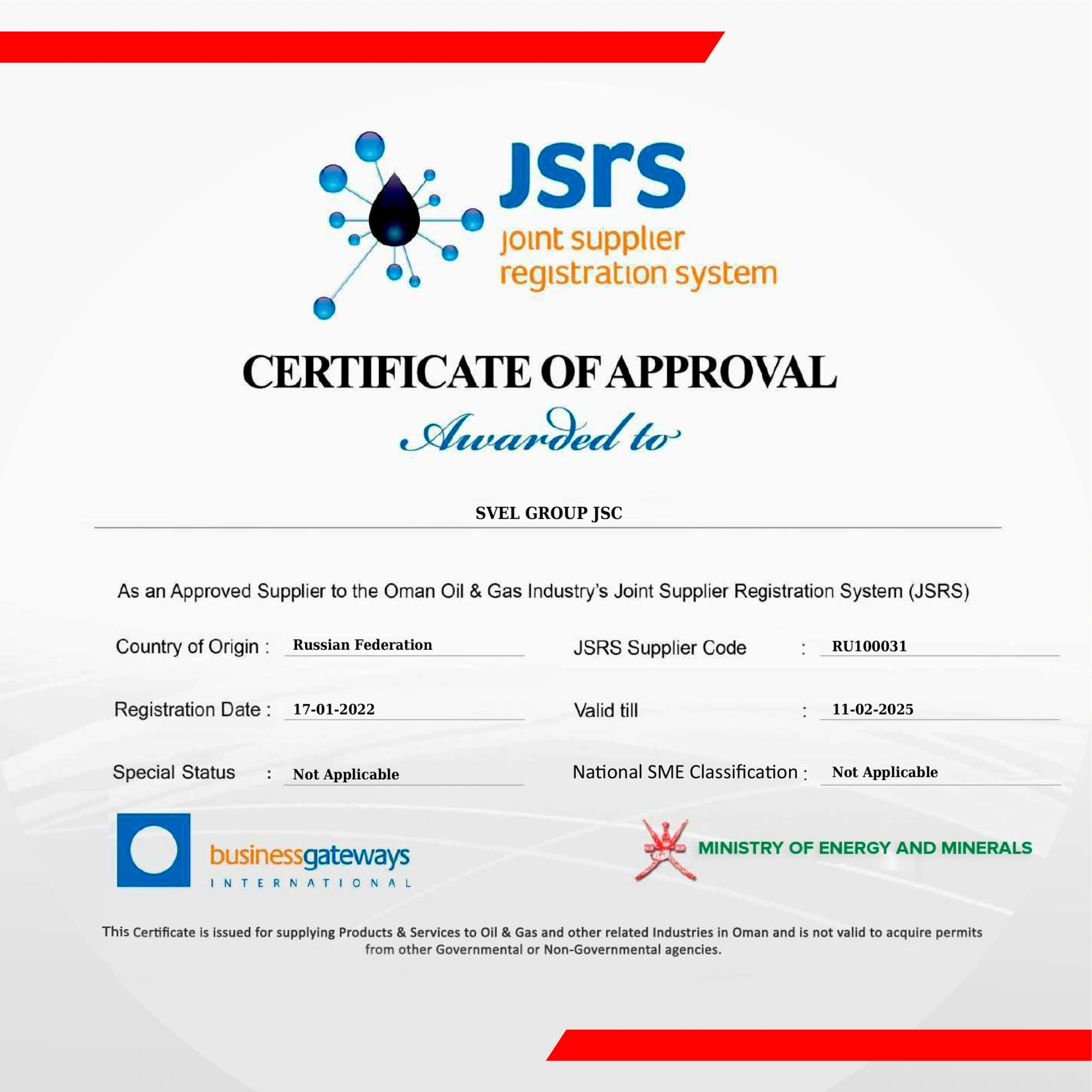 SVEL Group Accredited for Delivery to Oman