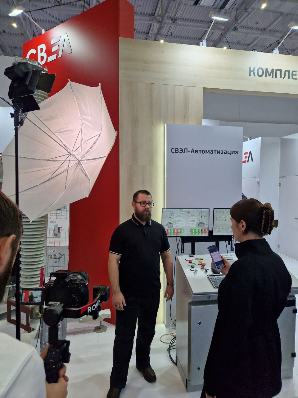 Главный инженер направления «СВЭЛ Автоматизация» Дмитрий Коваль и эксперт IEK DIGITAL – отечественного разработчика программного обеспечения MasterSCADA 4D рассказали посетителям стенда о совместных кейсах компаний в сфере АСУТП. По мнению потенциальных заказчиков, рынок давно ждал такого предложения, сбалансированного по цене и функционалу. С помощью пульта специалисты смоделировали процесс управления технологическими процессами в цехе по выпуску сверхмощных трансформаторов до 750 кВ и на электроподстанции, скомплектованной из продуктов СВЭЛ.