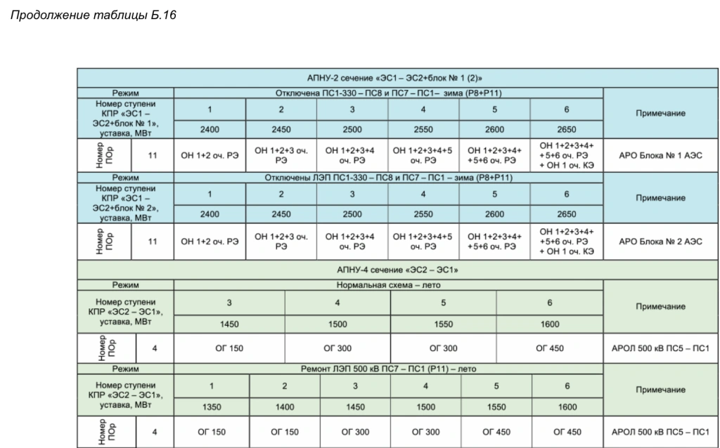 Сечение — номер ступени (значения от 0 до 15), если больше или равно 64 — ремонтная схема в сечении нерасчетная. Для обоих полукомплектов — одинаково;